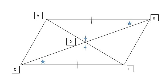 In parallelogram ABCD, one way to prove that diagonals and bisect each other is to prove triangle AXB congruent to triangle CXD. Which triangle congruency theorem proves that the triangles are congruent?
