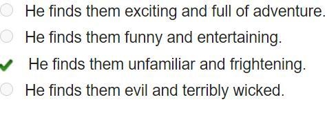 Three years late but for anyone else looking for this answer its C: He finds them unfamiliar and frightening.