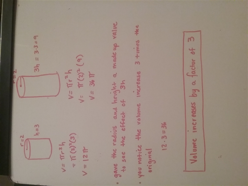 The height of a cylinder is increased by a factor of 3 the radius is not changed what is the effect of the increase on the volume of the cylinder