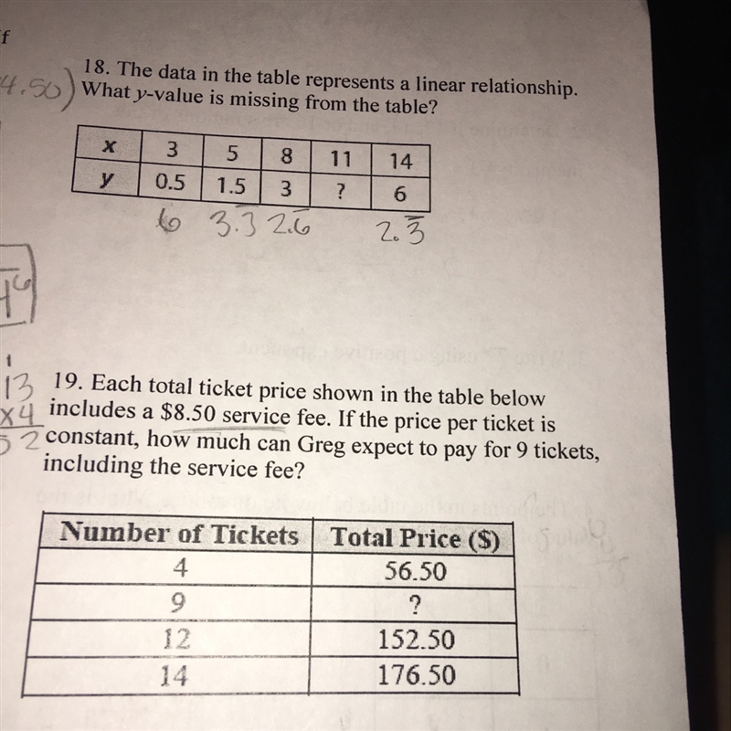 The answer to #18 will be 4 since for every x-value, the y-value increases by 0.5. It's just that they skip some of the x-values tricking you.