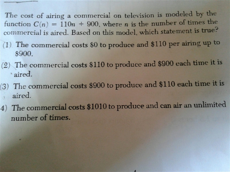 Thus, the answer to your question is option 3; the commercial costs $900 to produce and $110 each time it is aired.