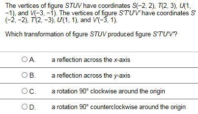 The answer would be A. You would reflect it known as reflection. Wouldn't be y-axis because if you did it wouldn't be right/ or you wouldn't have a correct answer. Hope this helped!