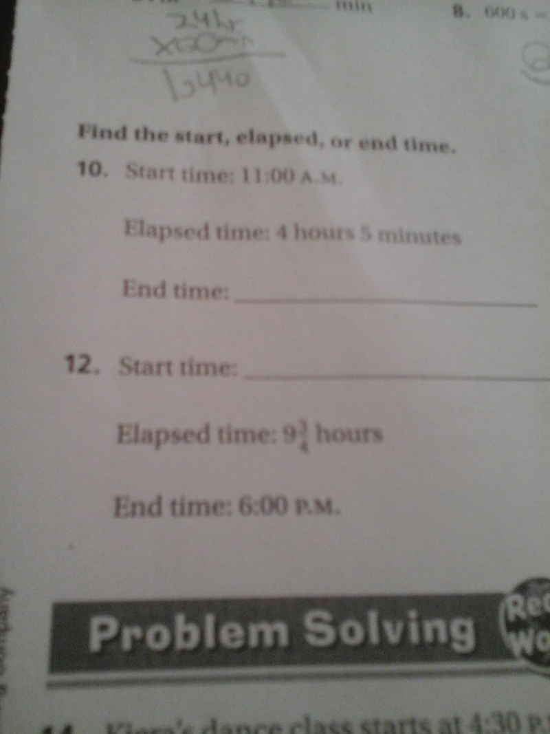 on #10 the answer for the end time is 3:05. on #12 the answer for the start time is 9:45.