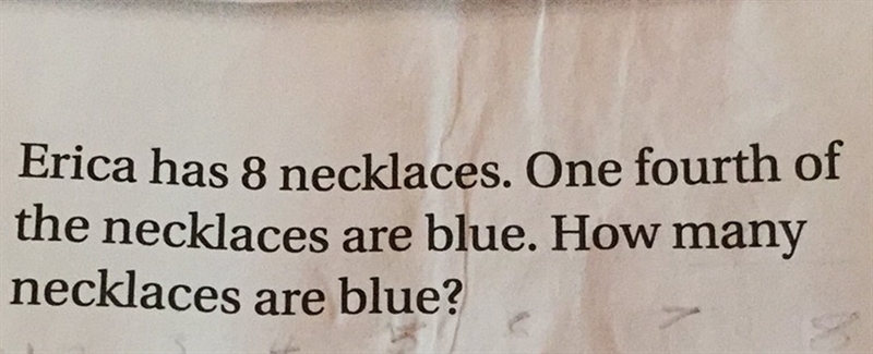 Erica has 8 necklaces one fourth of the necklaces are blue how many necklaces are blue