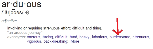 Here is the proof; the arrow points to burdensome.