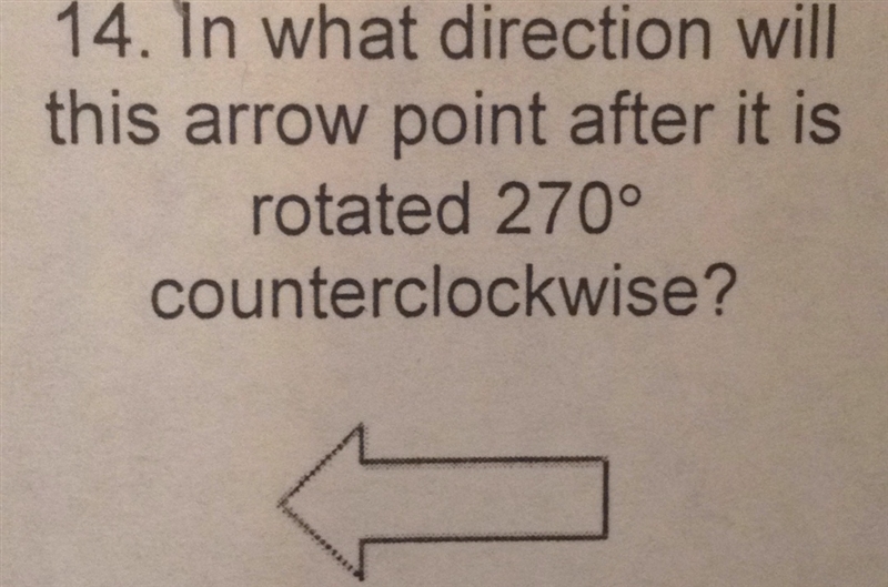 In what direction will this arrow point after it is rotated 270 degrees counterclockwise