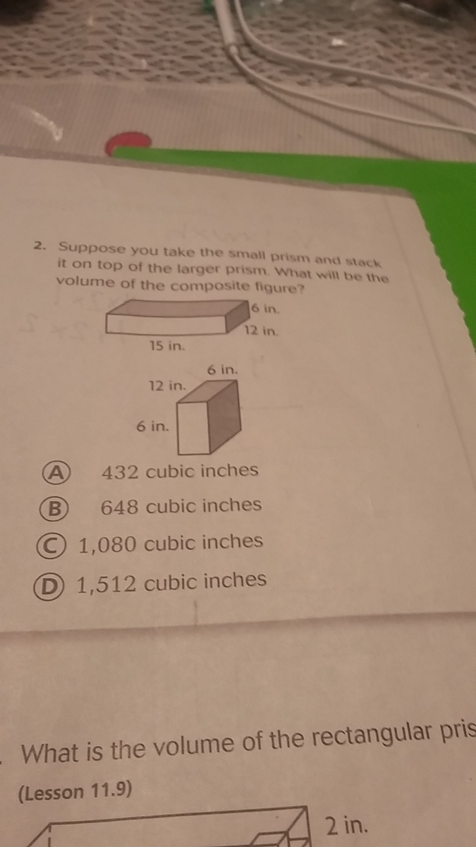 the top prism would be 15 times 12 times 6 which would be 1080