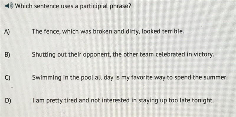 Which sentence uses a participial phrase?