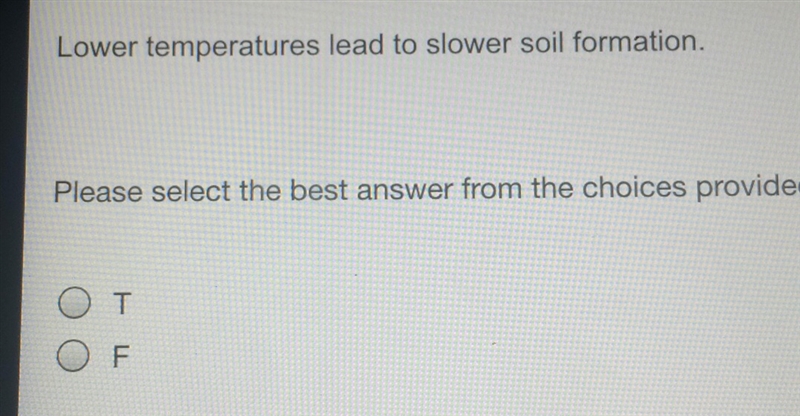 It is true that lower temperatures lead to slower soil formation. The lower the temperature in the air is, the slower the soil is going to form. In order for soil to form properly and completely, it needs to have some warmth because heat helps this process run faster.