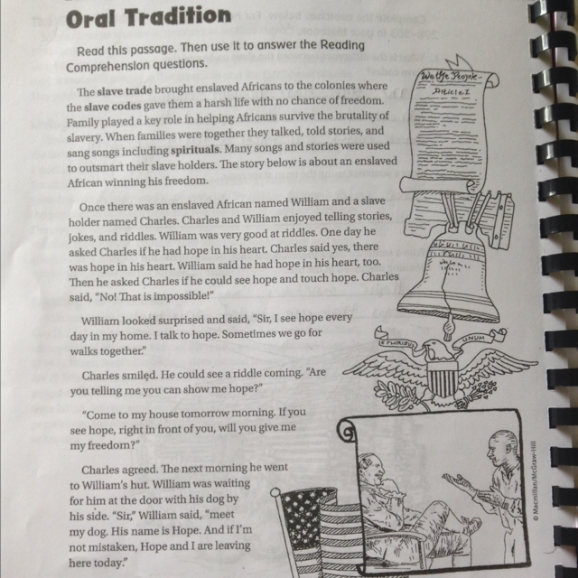 1. Is the word spiritual used as an adjective or a noun in the passage 2. What did the story have in common with many of the songs and stories of enslaved Africans Please help n…