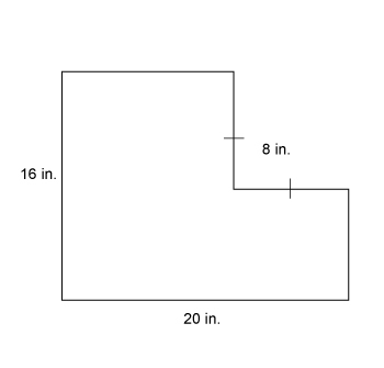 First solve for 16x20. 16*20= 320 inches. Now subtract the area that is removed, the 8x8 square. 8*8=64. 320-64=256. Our answer is 256in^2.