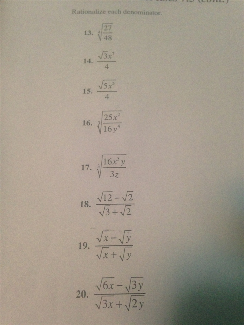 Algebra II. Radical expressions. Rationalize each denominator and show work.