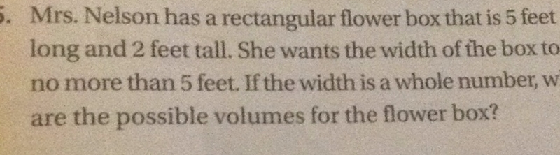 if the width has to be a whole number no more than 5 then the only options for the width is 1, 2, 3, 4, or 5.