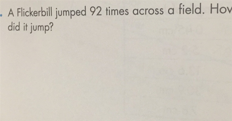 A Flickerbill jumped 92 times across a field. How did it jump? Is this a division problem or multiplication problem?