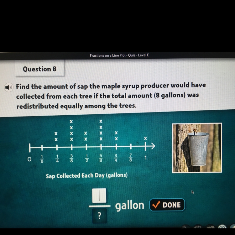 Each "x" on the number line seems to represent a tree that sap has been collected from. That's 15 trees. Furthermore, you know that the total amount of sap is 8 gallons, because it's stated in the question.