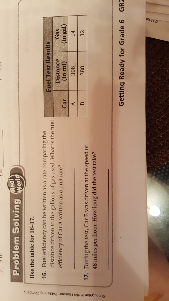 For number 17, since the car was driven at 48 mph, we just have to divide distance driven by speed to get how long it took...