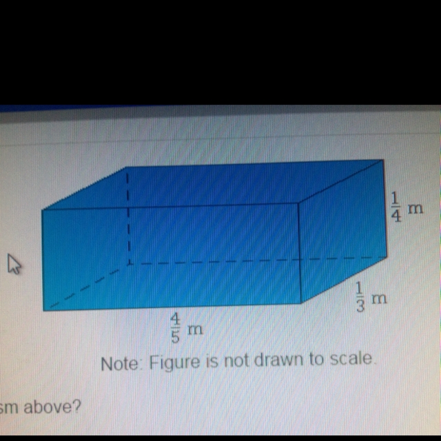 V = abc = 4/5m * 1/3m * 1/4m = 4/60m³ = 1/15m³
