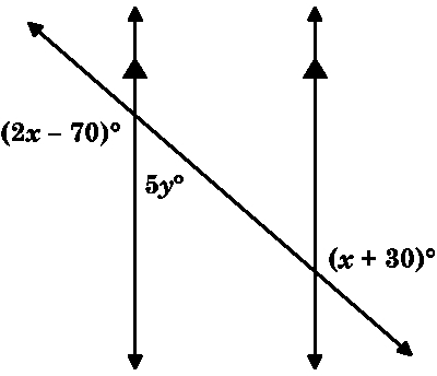 remember that a straight line anggle measure is 180, so therefor the 2 angles 2x-70 and 5y add to 180
