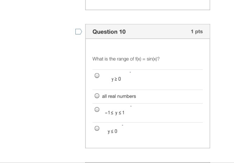 Third option. The sin wave travels from an amplitude of -1 to 1.