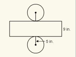 To find this, you will have to find the circumference of one of the circles. you have to do this because you only have the height of the "rectangle" but not the length. the circumference is the length. :)