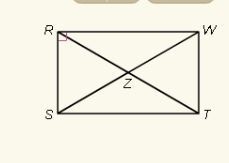 rectangle rstw has diagonals RT and SW that intersect at Z. If RZ= 5x+8 and SW= 11x-3 find the value of x.