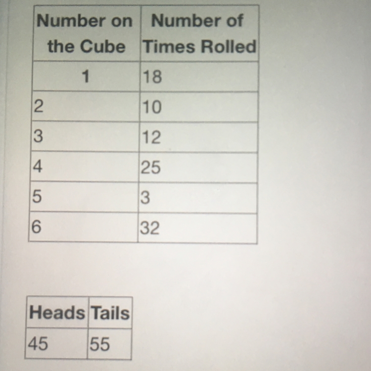 Given : Abdul used a probability simulator to roll a 6-sided number cube and flip a coin 100 times. The results are shown in the tables below.