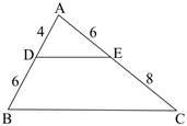 For DE to be parallel to BC, AD:AB must be equal to AE:AC. Here 4:10 ≠ 6:14