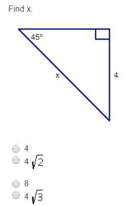 The hypotenuse, or x, is equal to