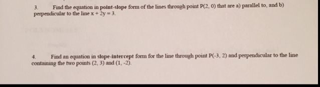 3.) Point slope form => y - y1 = m(x - x1); where (x1, y1) ia a point which is on the line and m is the slope.