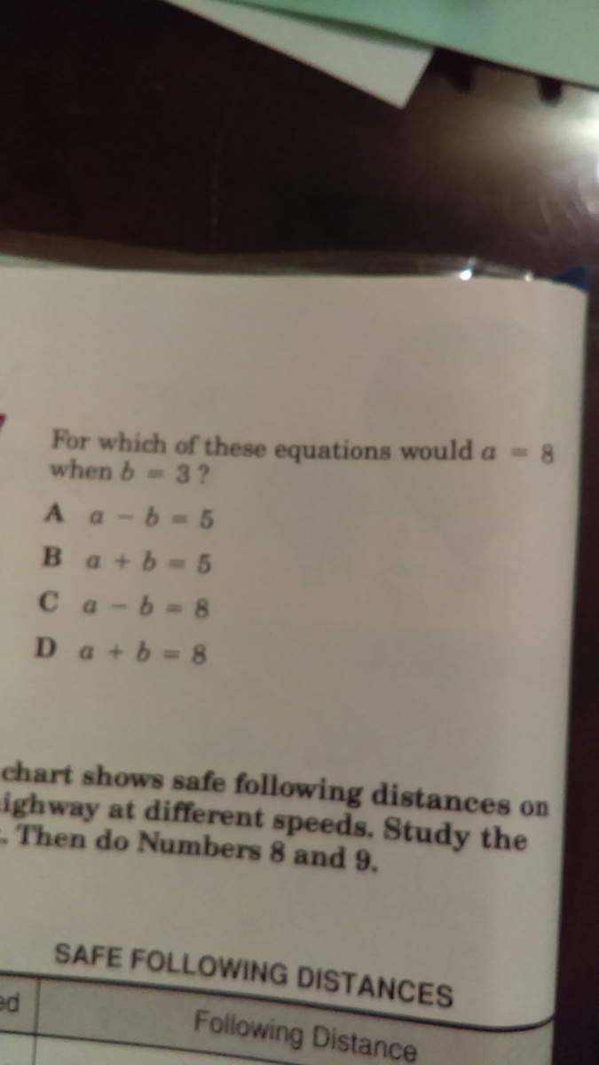 Youn could test all of the options by putting 8 and 3 in for a and b.