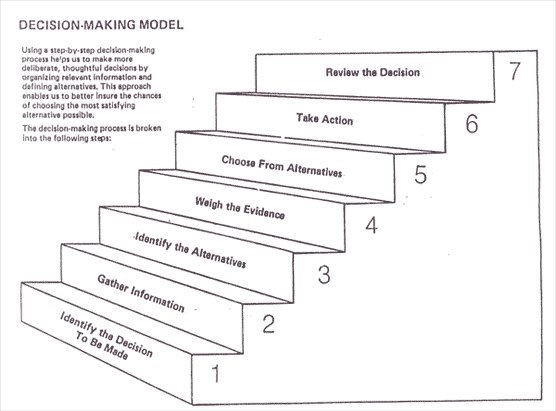 The answer is B. There are 7 steps in the decision-making process. The 7 steps are the following: