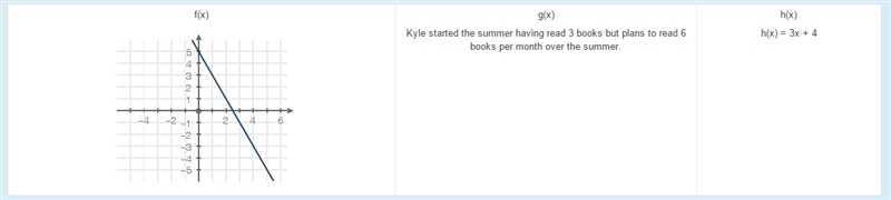 Which function below has the lowest y intercept? Select one: a. f(x) b. g(x) c. h-example-1