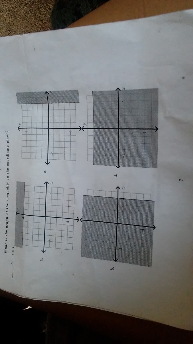 the answer is c because when it's an inequality, x=4 that means that you need to put