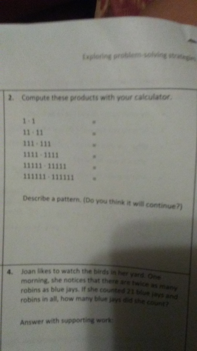 the pattern is that with each '1' added, there is another consecutive number added. if there are 3 ones, it I'll go up to 3 and then back down to 1 (111*111=12321)