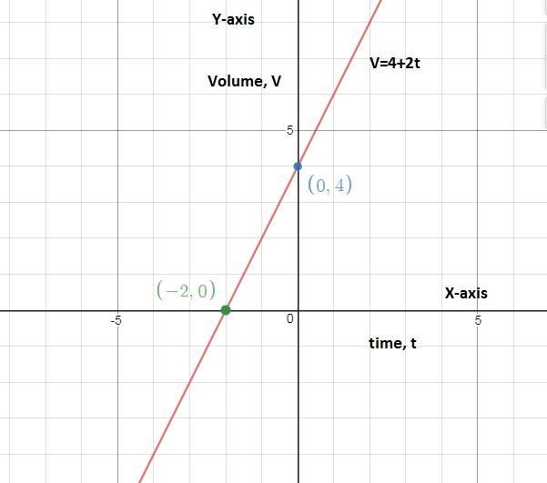 So, (t. V) = (0, 4) and (-2, 0) are two points on the graph, if 't' is plotted along X-axis and 'V' is plotted along Y-axis.