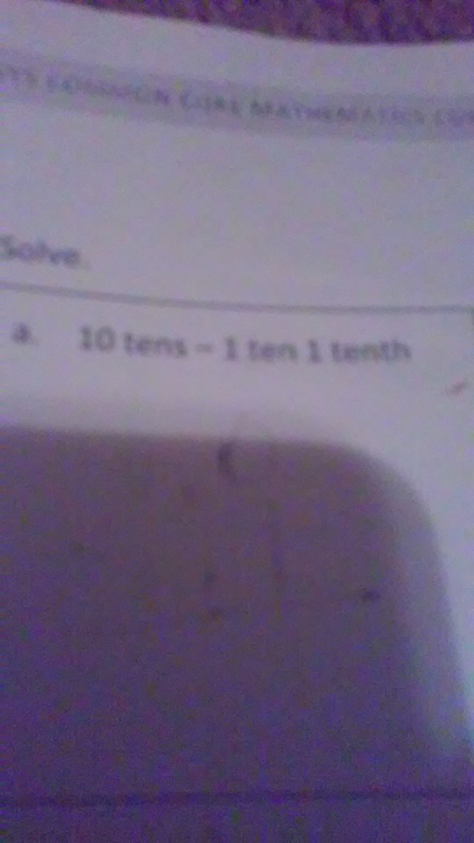 1 tens cause 1 ten plus one 1 tenth is 11 and 11-10 is 1 right
