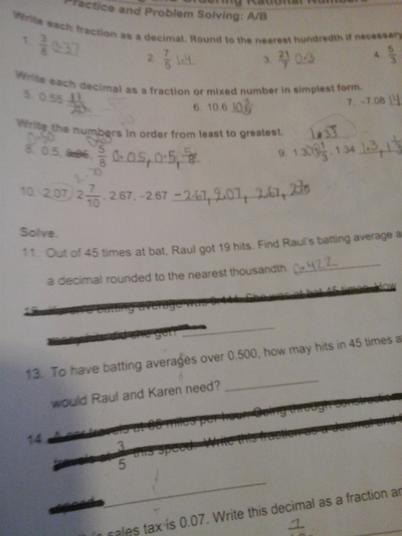 To have batting averages over 0.500,how many hits in 45 times at bat would Raul and Karen need