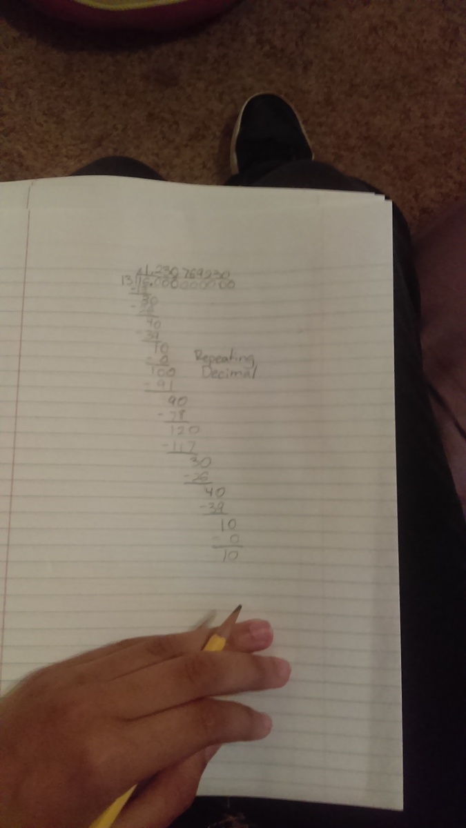 Use long division to find the decimal equivalent 13/16 show your work is the decimal equivalent a terminating or repeating decimal