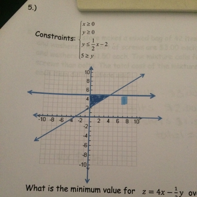 For (0, 5): z = 4(0) - 1/3(5) = -5/3