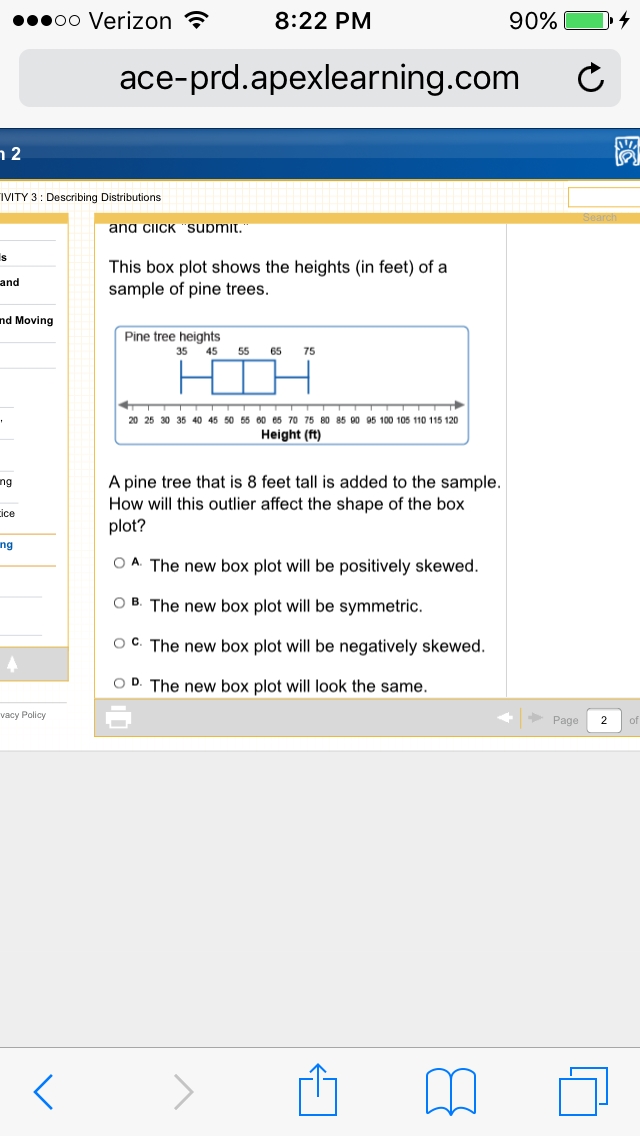 That is because an 8 feet tall tree would make the box plot sway a little more to the left.