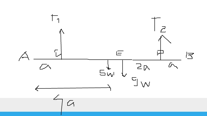 Moment about D=0 or,T1*6a-5w*3a-9w*2a=0 T2+T1=5w+9w