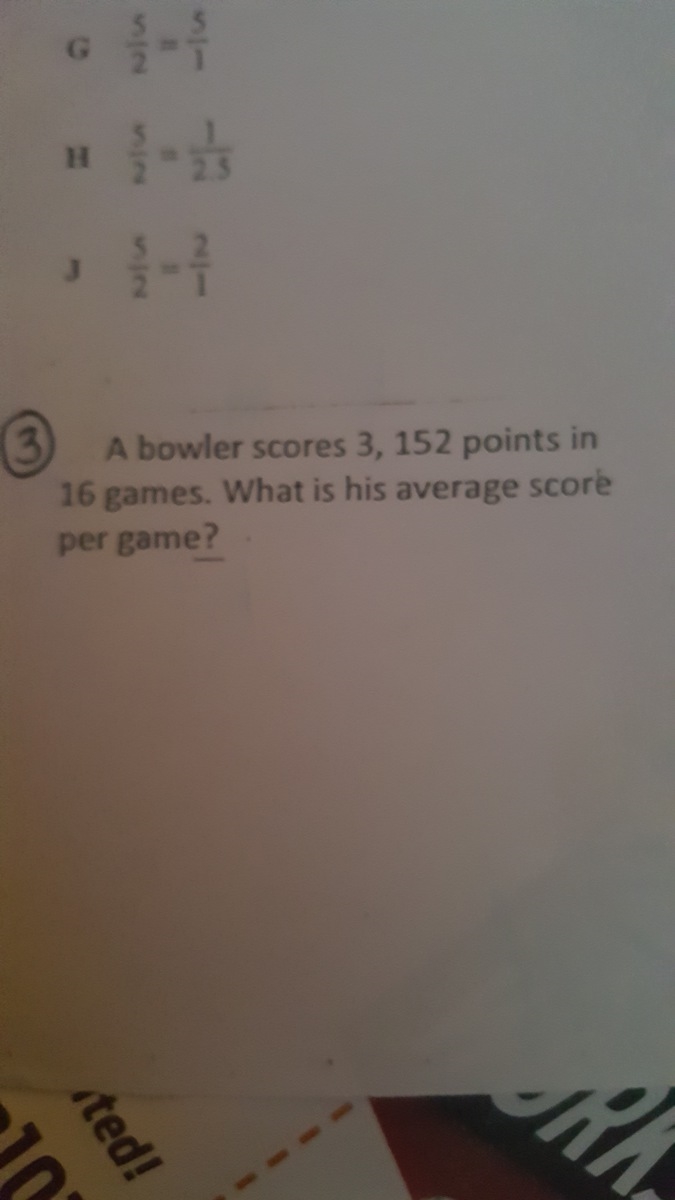 A bowler scores 3,152 points in 16 games.What is his average score per game?