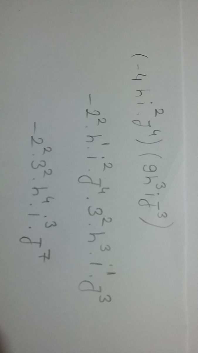 (-4hi^2j^4) (9h^3ij^3) How do you simplify assuming no denominator is equal to zero