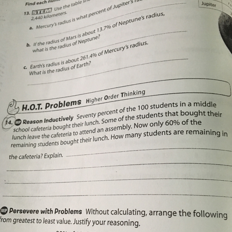 So 70 students had bought lunch because 70% of 100 is 70. Now take away 60% of that and you get 42.