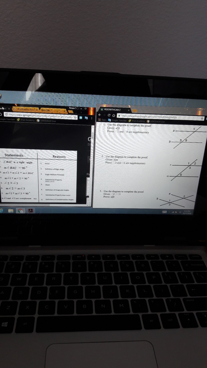 I don't know resolve the three exercises rigth.i need the statement and reason(left is a example).plis i need help for this homework