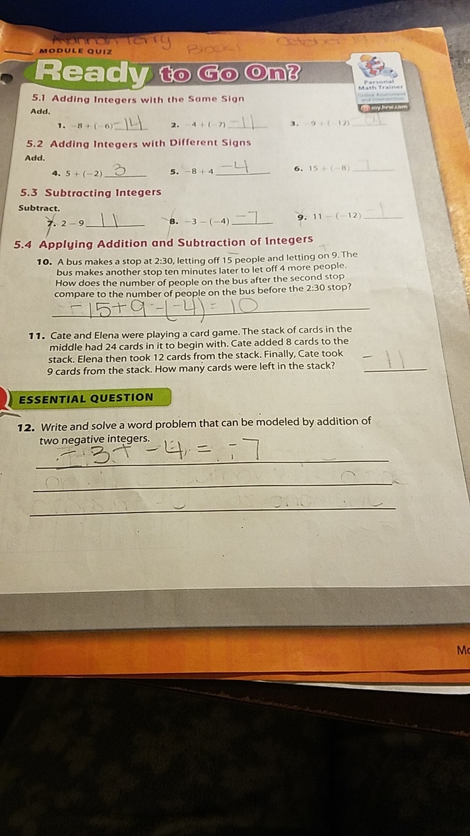8) -3 - (-4)= 1 because you owe 3 friends cookies, then you get 4 cookies and have one left over