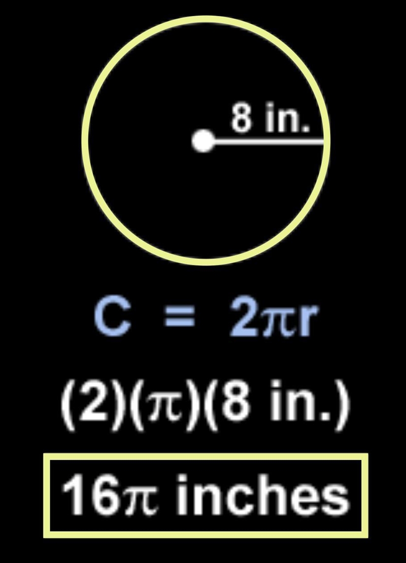 Find the circumference of a circle with radius 8 inches.