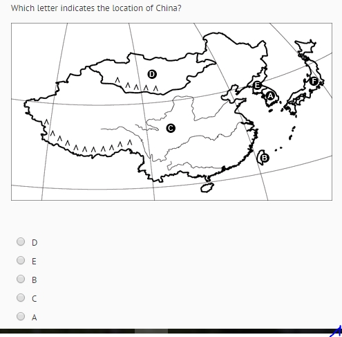It's letter C. Because letter D is Mongolia and the rest of the letters is japan and South Korea.