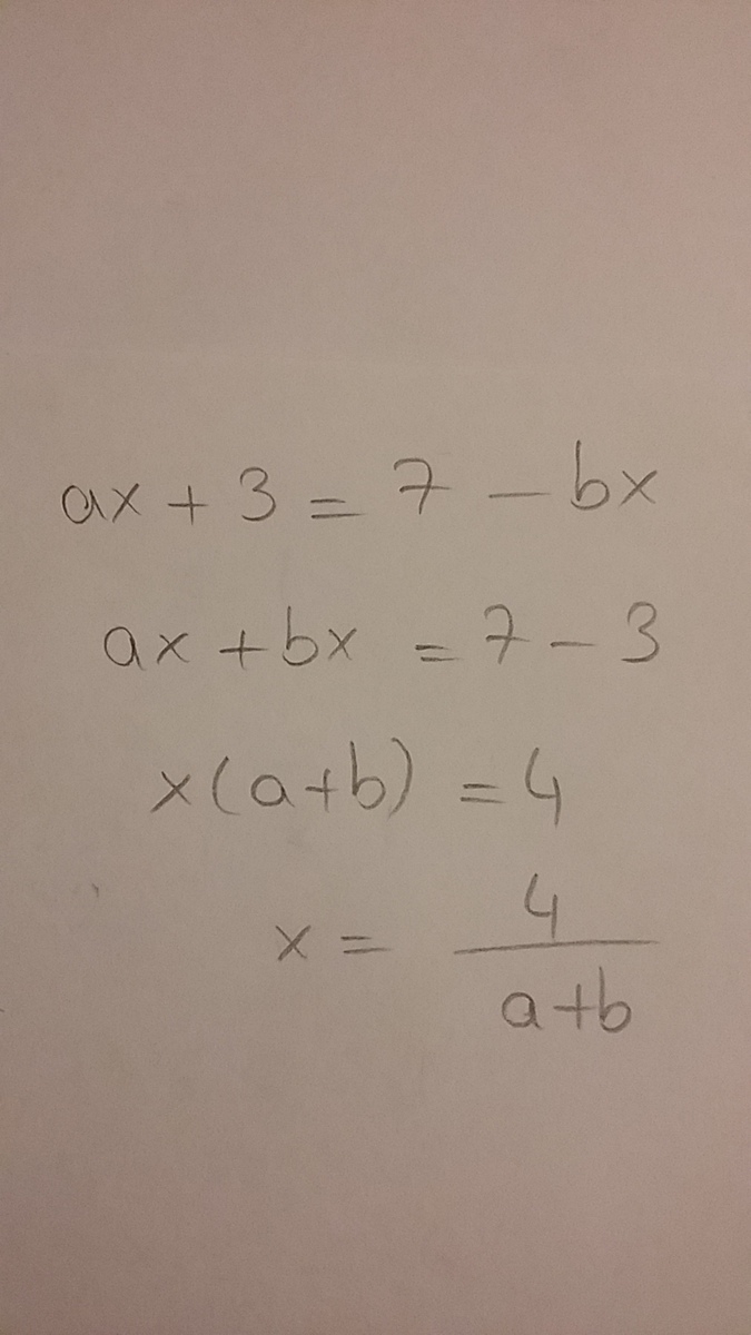 If ax+3=7-bx, what is x expressed in terms of a and b