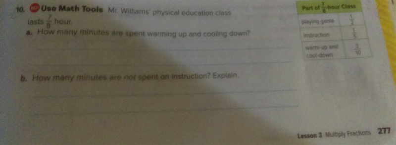 a) Then warm up and cool down lasts 3/10 of the class so this is: